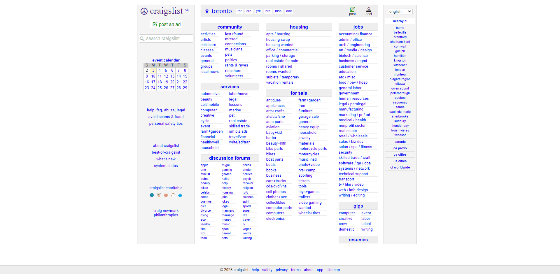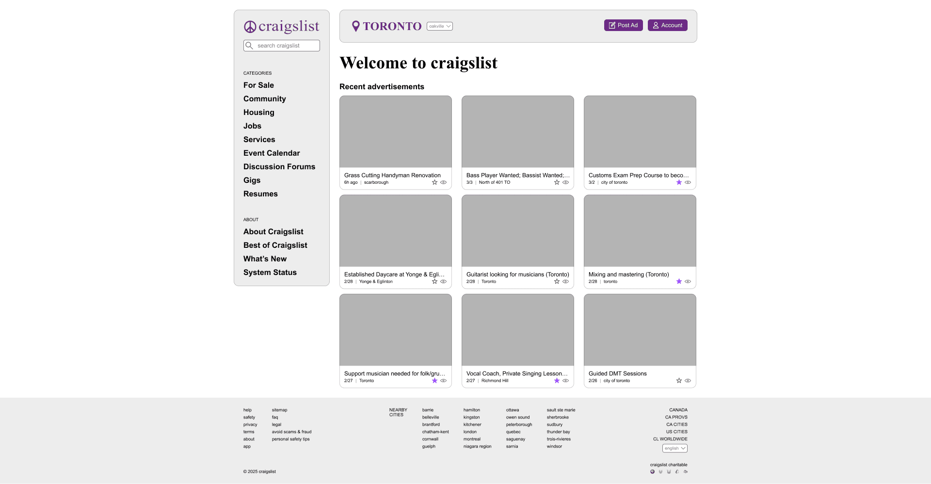 Craigslist homepage